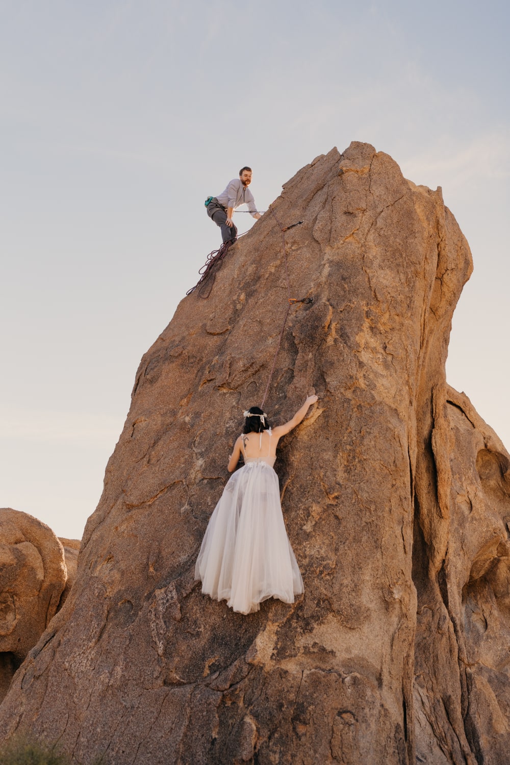 So as you may know within rock climbing you have Trad and Sport. You can do either of those for sure for a rock climbing wedding! Outside of the traditional rock climbing options for your wedding day you can: Canyoneer (highly recommend Moab, Page or Zion for this) Ice climb or canyoneer (highly recommend Alaska or Iceland for this) or you can do a via feratta (highly recommend Amangiri for this in Page, Arizona).